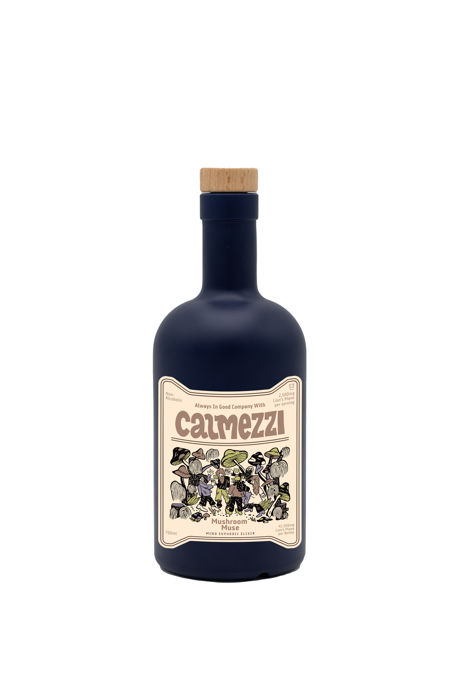 A non-alcoholic elixir infused with Lion's Mane mushroom, featuring smooth coconut, soft cocoa, and hints of citrus and herb for a balanced, mind-clearing experience.